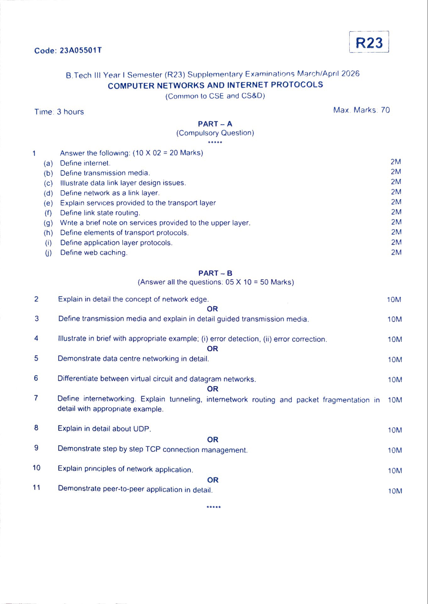 | 7 | COMPUTER NETWORKS & INTERNET PROTOCOLS - 23A05501T (Theory) | JNTUA - R23 - B.Tech. CSE III & IV Year Course Structure & Syllabus-PDF | JNTUA | JNTUA | JNTUA | Reference | Link | True |